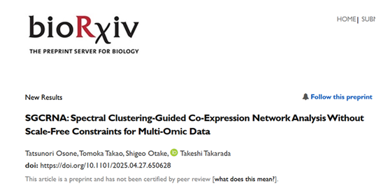 Osone, T., Takao, T., Otake, S., and Takarada, T. (2025). SGCRNA: Spectral clustering-guided co-expression Network Analysis without scale-free constraints for multi-omic data. bioRxiv, 2025.04.27.650628. 10.1101/2025.04.27.650628.